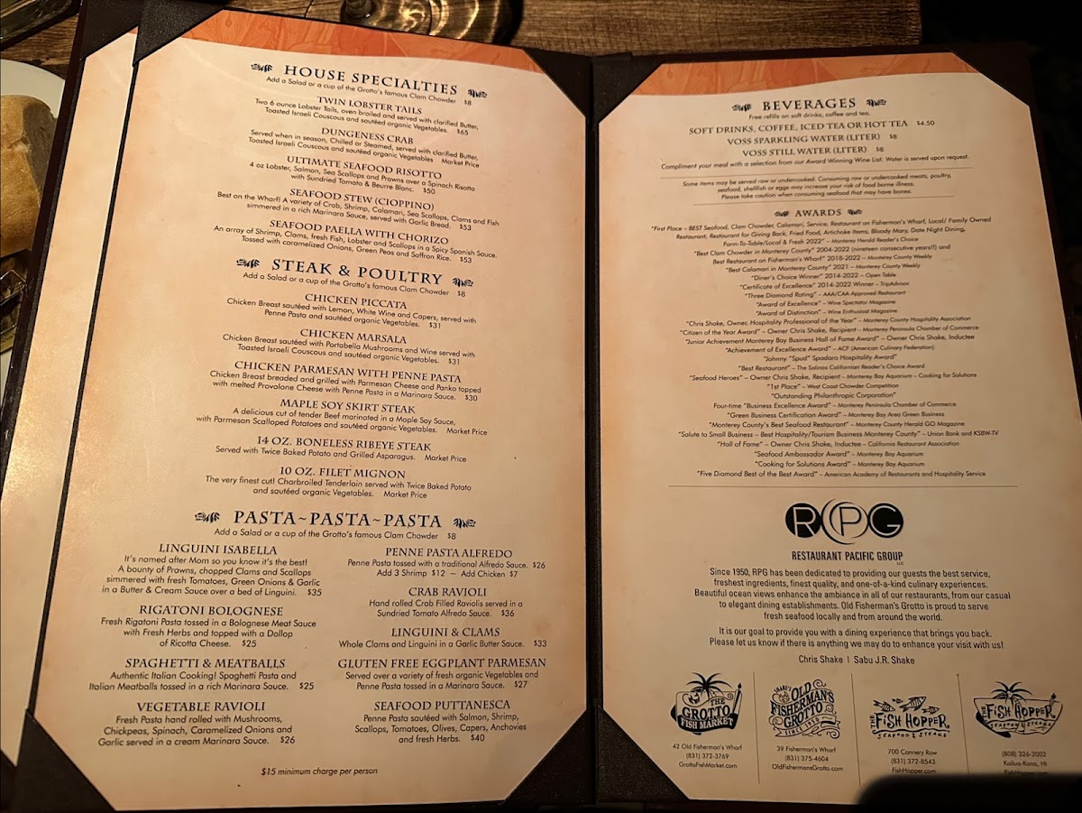 Welcome to Old Fisherman’s Grotto, a seafood haven nestled along the picturesque Fisherman’s Wharf in Monterey, California. With its stunning views of the ocean, this inviting restaurant seamlessly blends the charm of coastal dining with a menu that showcases the best of the sea.