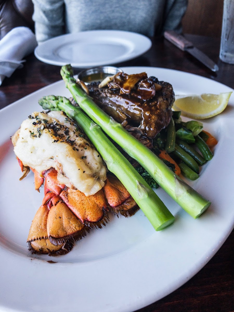 As evening falls, the restaurant transforms into a haven for romantic dinners or lively gatherings. Couples, like one celebrating their anniversary, delight in the Seafood Special for two, praised for being cooked to perfection. Larger groups will find the Surf & Turf offering of Filet Mignon alongside a succulent Lobster Tail both sumptuous and satisfying.